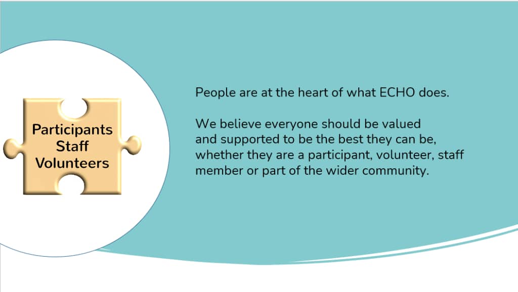 ECHO > About > Vision, Mission & Values Vision, Mission & Values ECHO Aims: Want to find out more about ECHO’s strategy? Then please follow the link below: ECHO-Plan-2023 to 2026